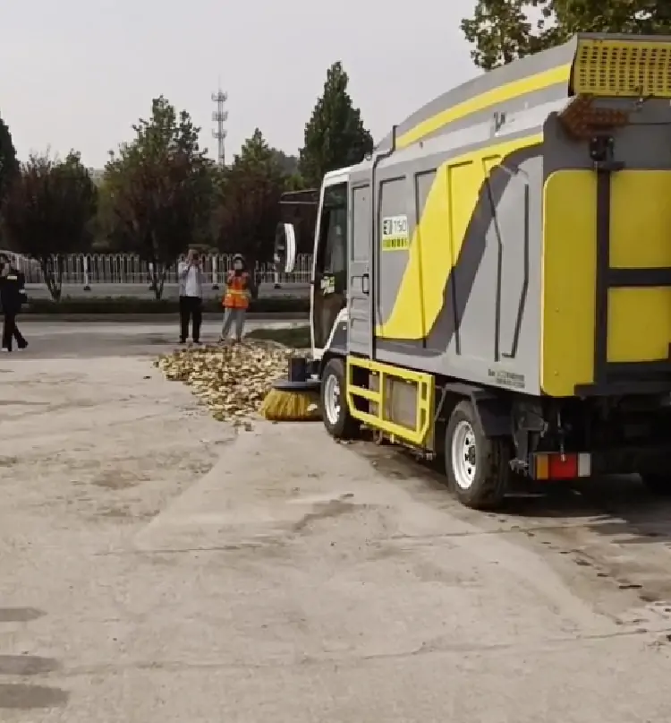 當秋季來臨不僅寓意著我們出門要加衣服,注意防寒,小心感冒,還寓意著大批量變黃的樹葉要集中掉落了。不管是市政環衛人行道路面,還是企業,工廠,學校,景區,園區等地方的院內都會形成大量樹葉堆積清理,收集,轉運難的現象,為了抑制這種時間發生造成環境,日常生活的困擾很多企事業單位,環衛部門都在使用樹葉收集器“家族”,其中大型樹葉收集車運用領域廣泛,吸葉效果高,非落葉季還能用于高壓沖洗,清掃等工作頗受青睞。此次某環衛部門以及環衛工人,到達現場參觀車輛工作情況,以及操作流程。