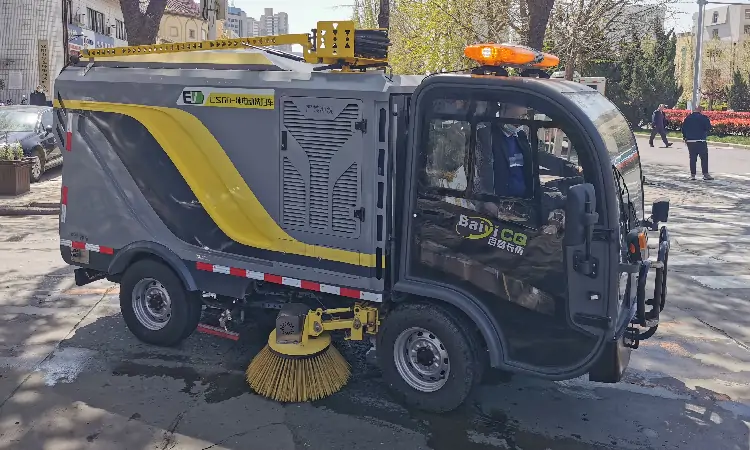 再一次例行售后服務的時候,經過一個路段的時候偶然看到了全段時間賣出的一輛純電動洗掃車,看到工人師傅們熟練的駕駛和功能應用,說明該車輛已經融入了日常的環衛清潔作業當中,本來是想上門看看車輛使用情況結果在路上看到了該車的“大顯神威”。工作人員隨即上前與環衛人員攀談起來。