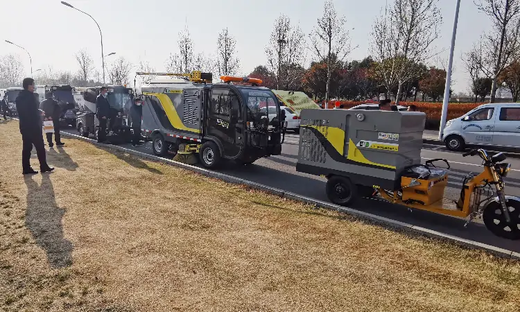 三輪高壓清洗車以及其他環衛車輛試車現場
